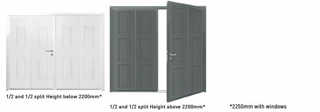 Asymmetric or 1/2 and 1/2 door leaf split - On asymmetrically split doors the maximum leaf width for the large leaf is 1524mm.