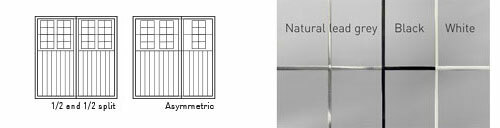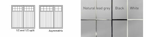 Mock leading is available in natural lead grey (as standard) black or white (on request). All doors have natural lead grey mock leaded-effect decoration as standard but are also available in a plain design.