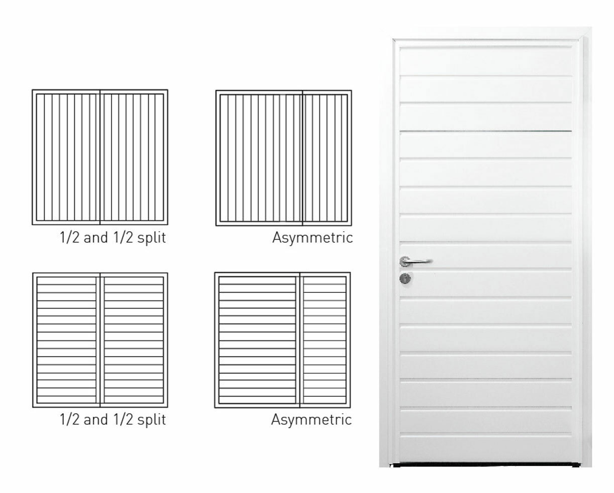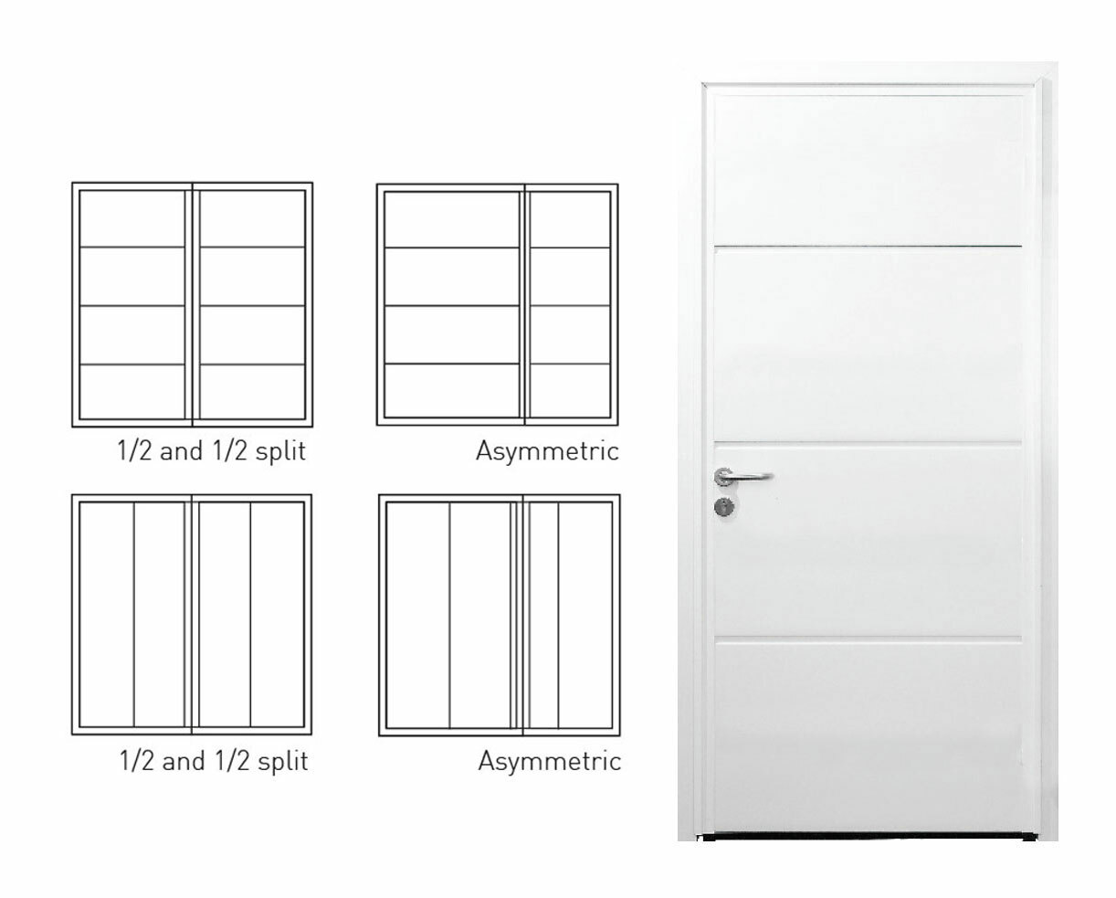 The CarTeck range of insulated side-hinged garage and personnel doors come in a range of 6 styles, available either horizontal or vertical. All of the designs shown are available with any combination of finish (excluding Georgian panel) and colour.