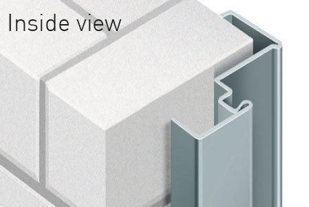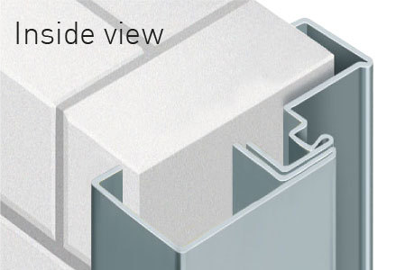 The innovative corner frame wraps around the front corner of the garage opening providing a neat edge. Its slim profile also gives an additional 56 mm drive through width compared to a block frame.